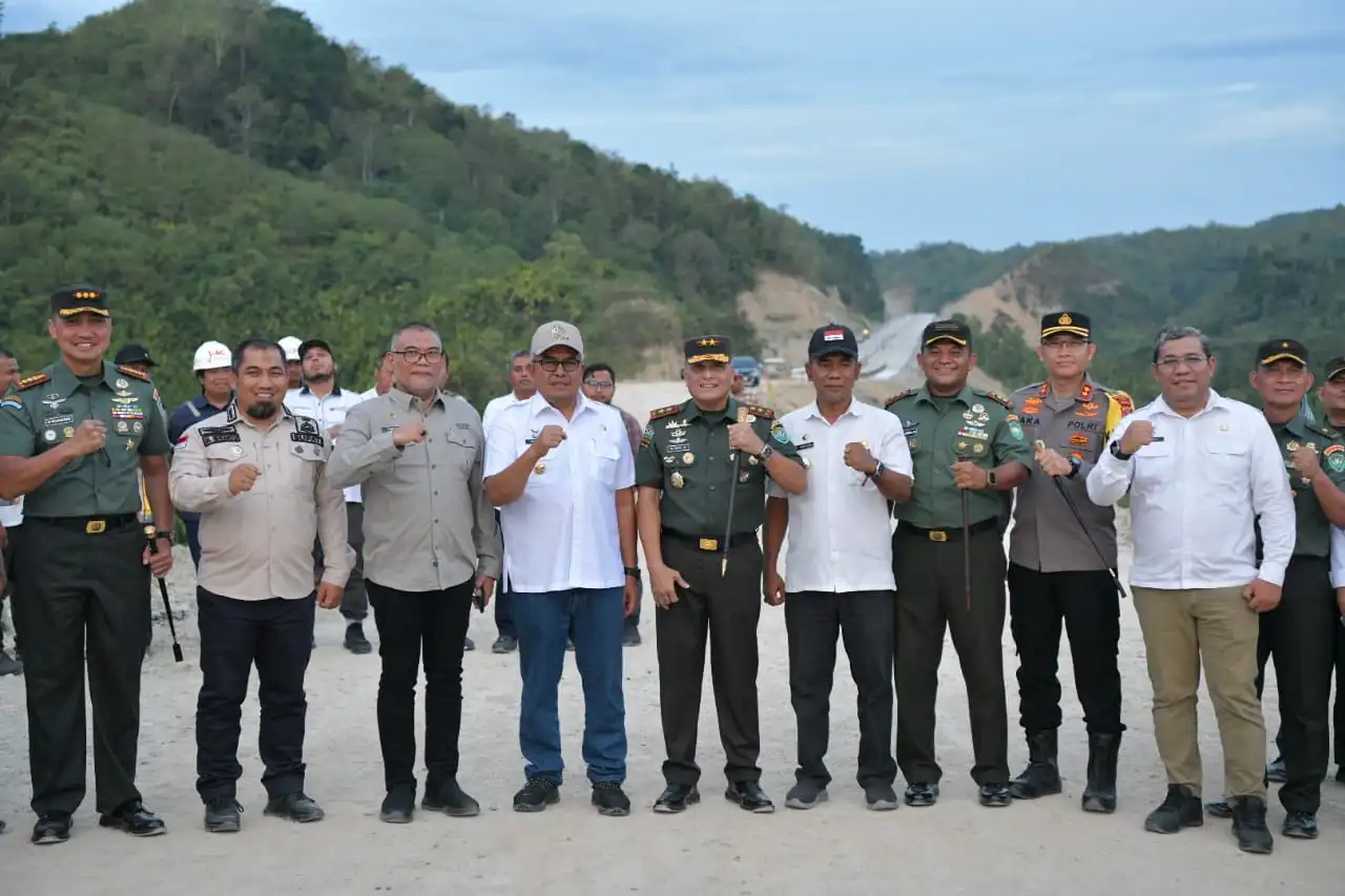 Penjabat (Pj) Gubernur Aceh Bustami dan Pangdam Iskandar Muda Niko Fahrizal meninjau dua lokasi di Tol Sigli-Banda Aceh (Sibanceh) seksi 1 Padang Tiji-Seulimeum, Rabu (24/7/2024). (Foto: Humas Aceh)