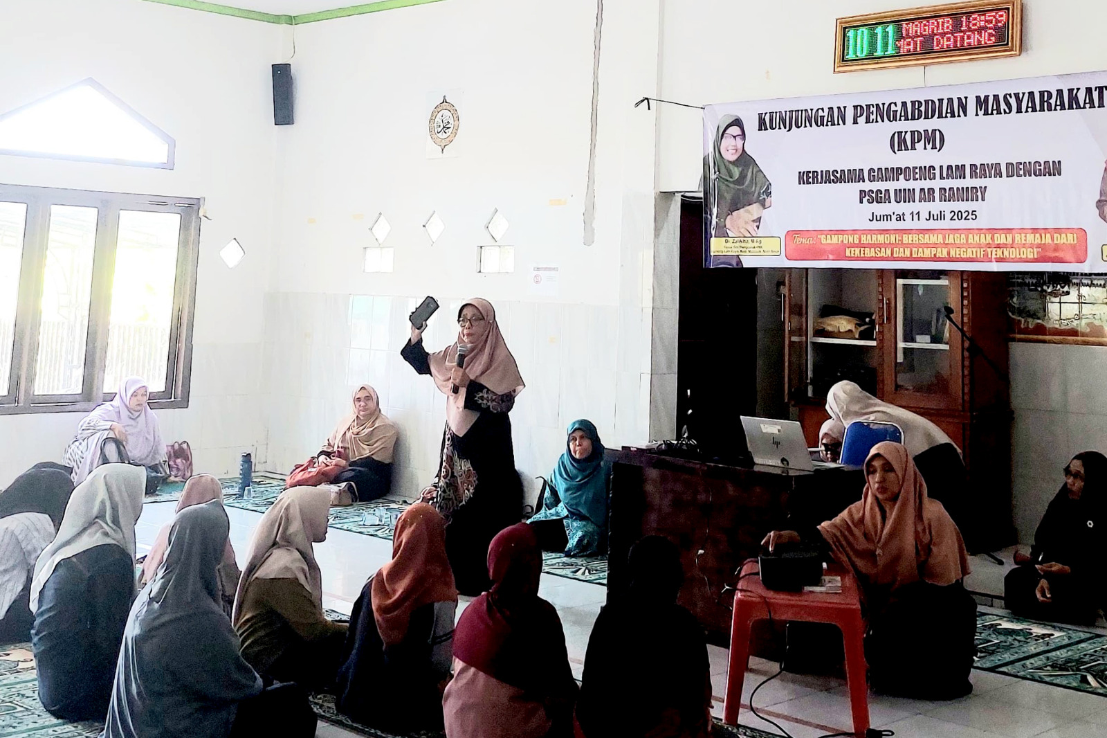 Kegiatan ini berlangsung atas kerja sama antara PSGA UIN Ar-Raniry dengan Tim Penggerak PKK Gampong Lam Raya, mengusung tema “Gampong Harmoni: Bersama Jaga Anak dan Remaja dari Kekerasan dan Dampak Negatif Teknologi.”