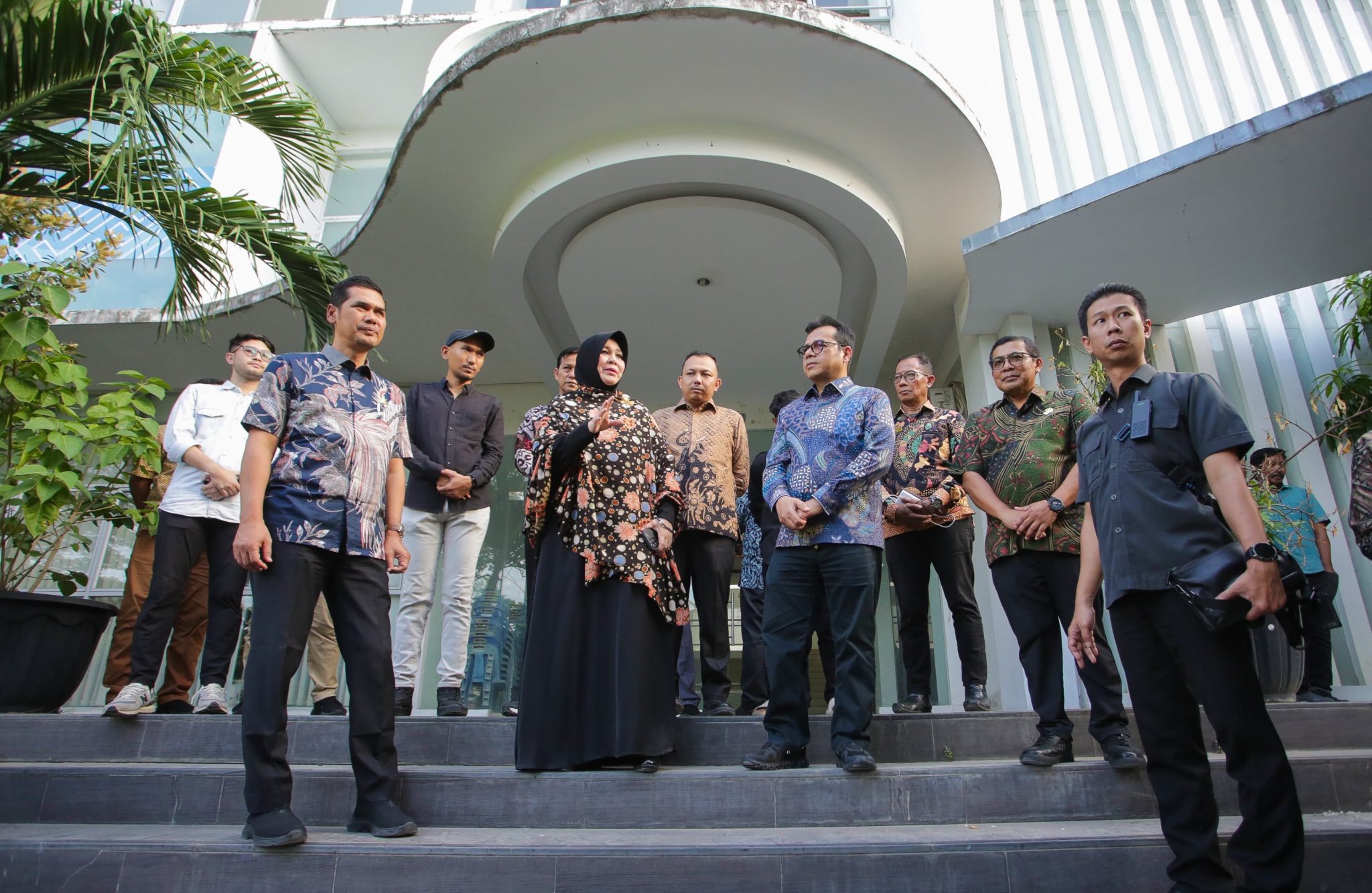 Wamen Komdigi Besar Patria dan Wali Kota Illiza foto bersama di depan gedung BAA yang masih Daly produk renovasi | Foto Humas