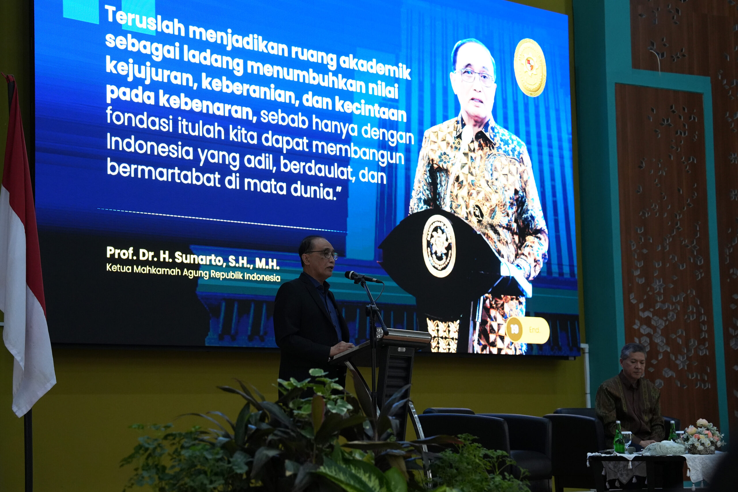 Dalam paparannya, Prof. Sunarto menegaskan bahwa pembaharuan hukum merupakan keniscayaan. “Hukum harus memberikan kepastian, namun ia tidak boleh berhenti bergerak,” ujarnya, mengutip pemikir hukum Roscoe Pound.