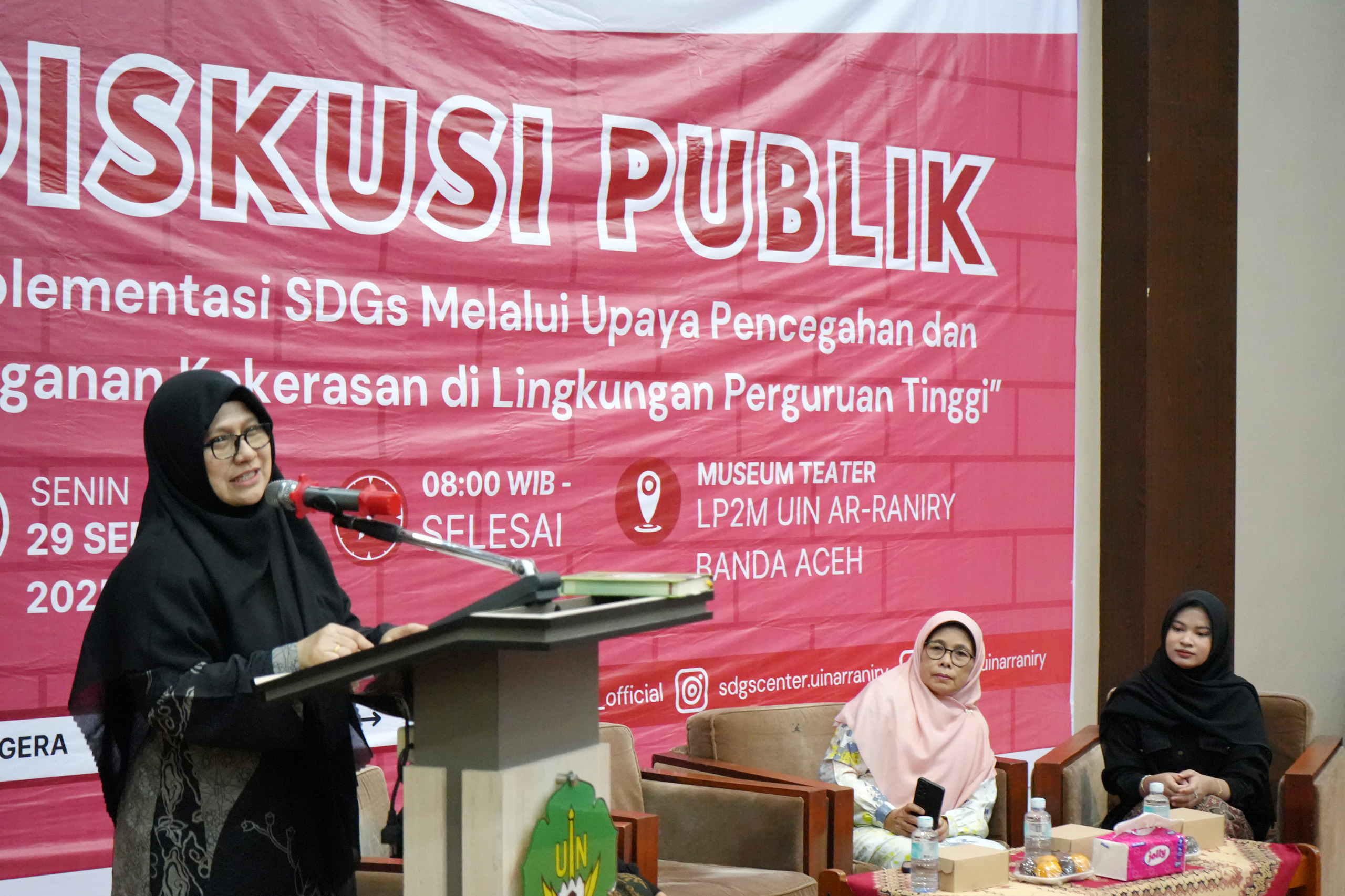 Hal itu ia sampaikan dalam diskusi publik bertema “Implementasi SDGs melalui Upaya Pencegahan dan Penanganan Kekerasan di Lingkungan Perguruan Tinggi” yang digelar di Aula Theater Museum UIN Ar-Raniry, Senin (29/9/2025).