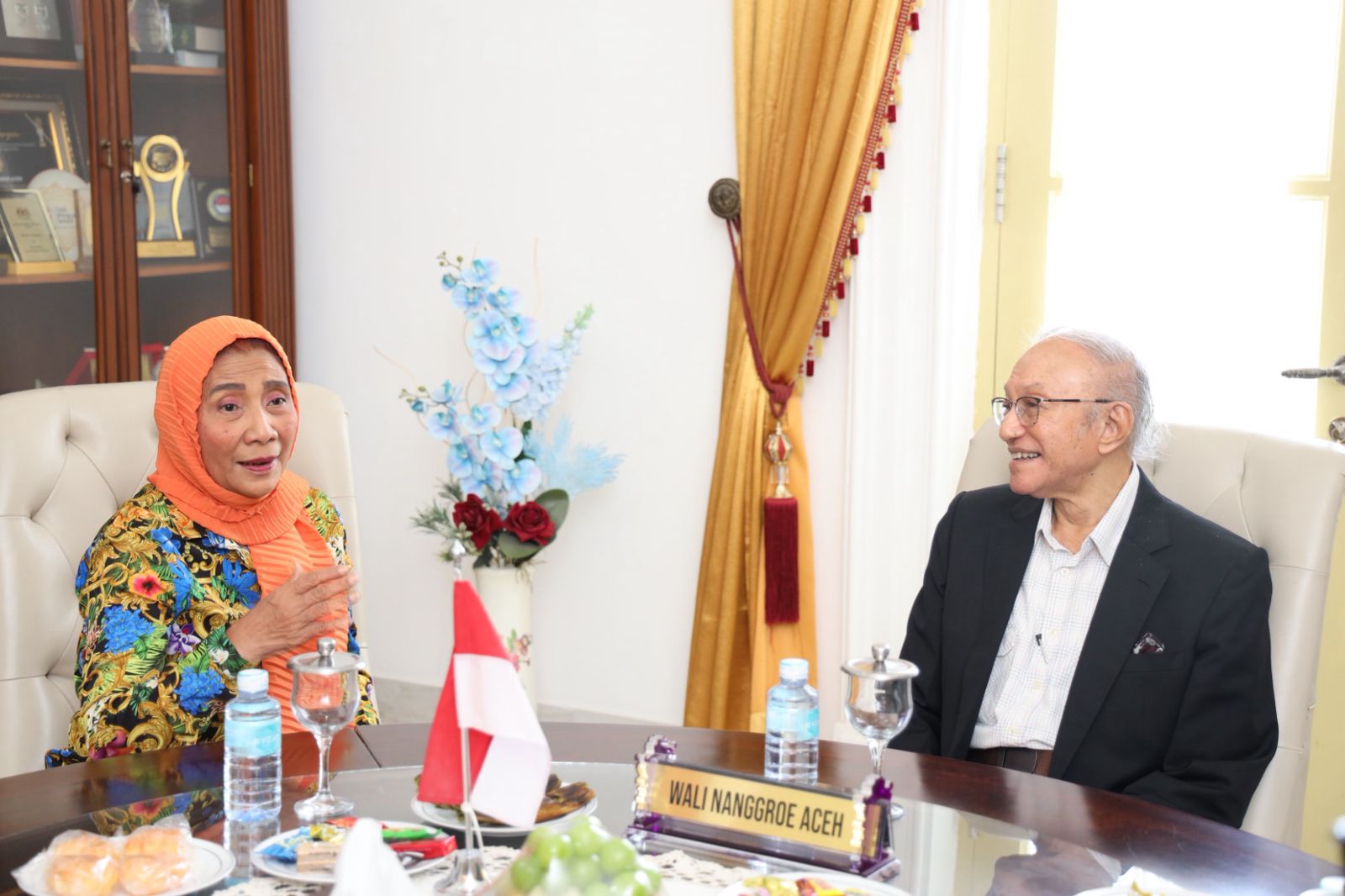 DONYAPOST, Banda Aceh — Bos Susi Air Susi Pudjiastuti, bersilaturahmi dengan Wali Nanggroe Aceh Paduka Yang Mulia Tgk. Malik Mahmud Al Haythar di Meuligoe Wali Nanggroe, Minggu (26/10/2025).