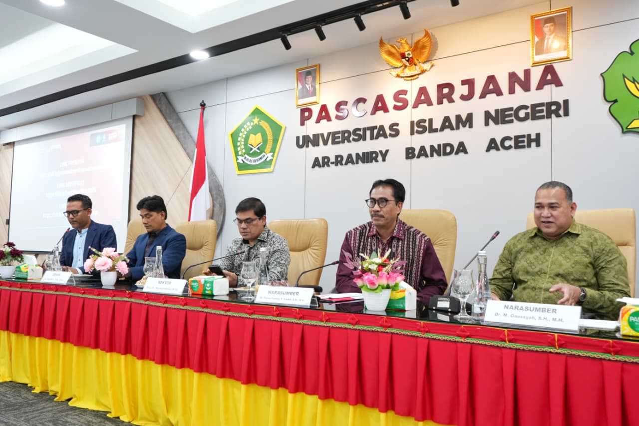 Kegiatan ini menghadirkan tiga pakar hukum nasional: Hakim Konstitusi RI Dr. Daniel Yusmic Pancastaki Foekh, pakar hukum pidana UII Dr. Aroma Elmina Martha, dan mantan Dekan Fakultas Hukum USK Dr. M. Gaussyah. Seminar dipandu oleh Dr. Delfi Suganda, SH, LLM, dan dibuka langsung oleh Rektor UIN Ar-Raniry, Prof. Dr. Mujiburrahman, M.Ag.