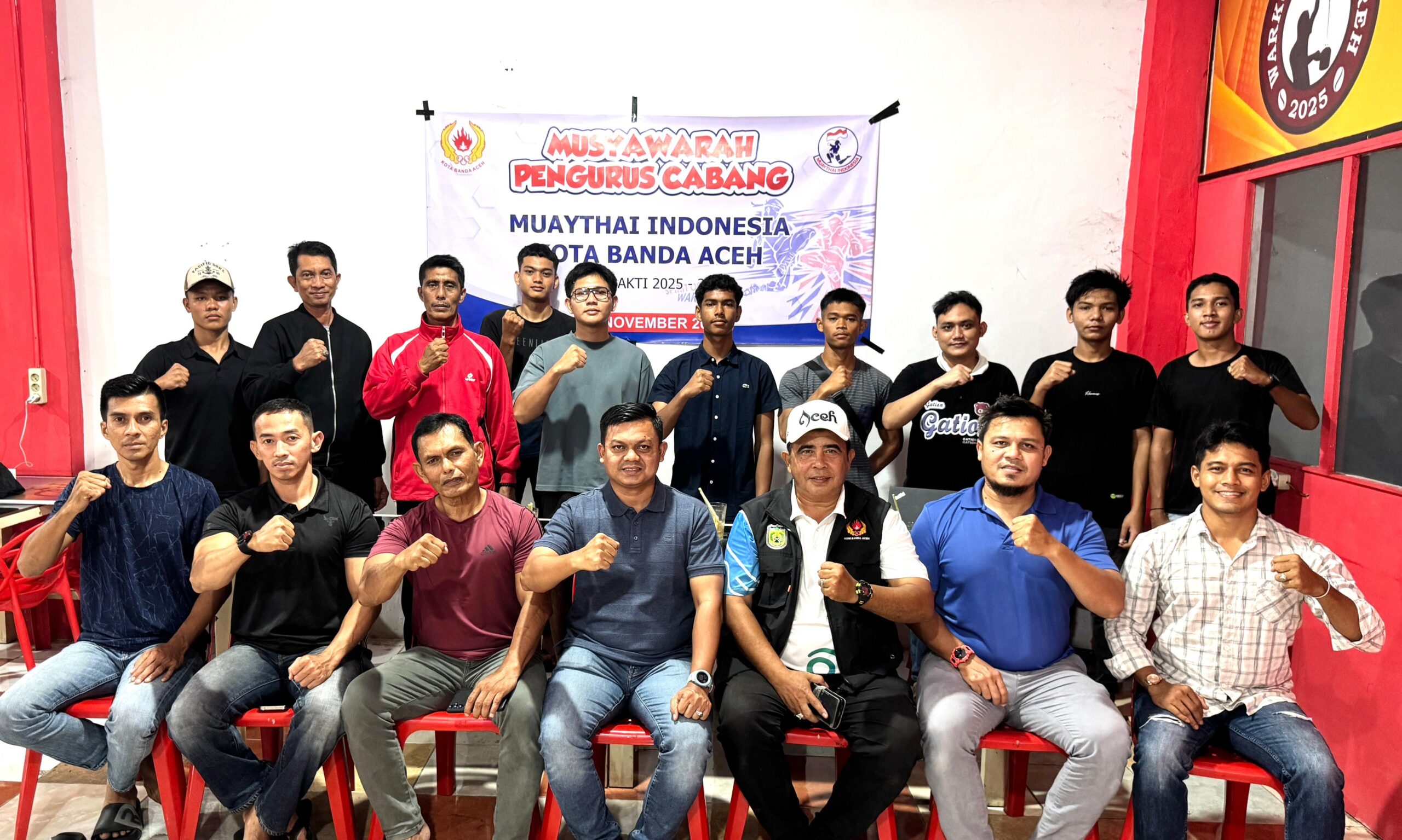 Pemilihan berlangsung dalam suasana penuh kekeluargaan dan semangat kebersamaan di kalangan pengurus serta pelatih Muaythai Banda Aceh, Senin (11/11/2025) malam.