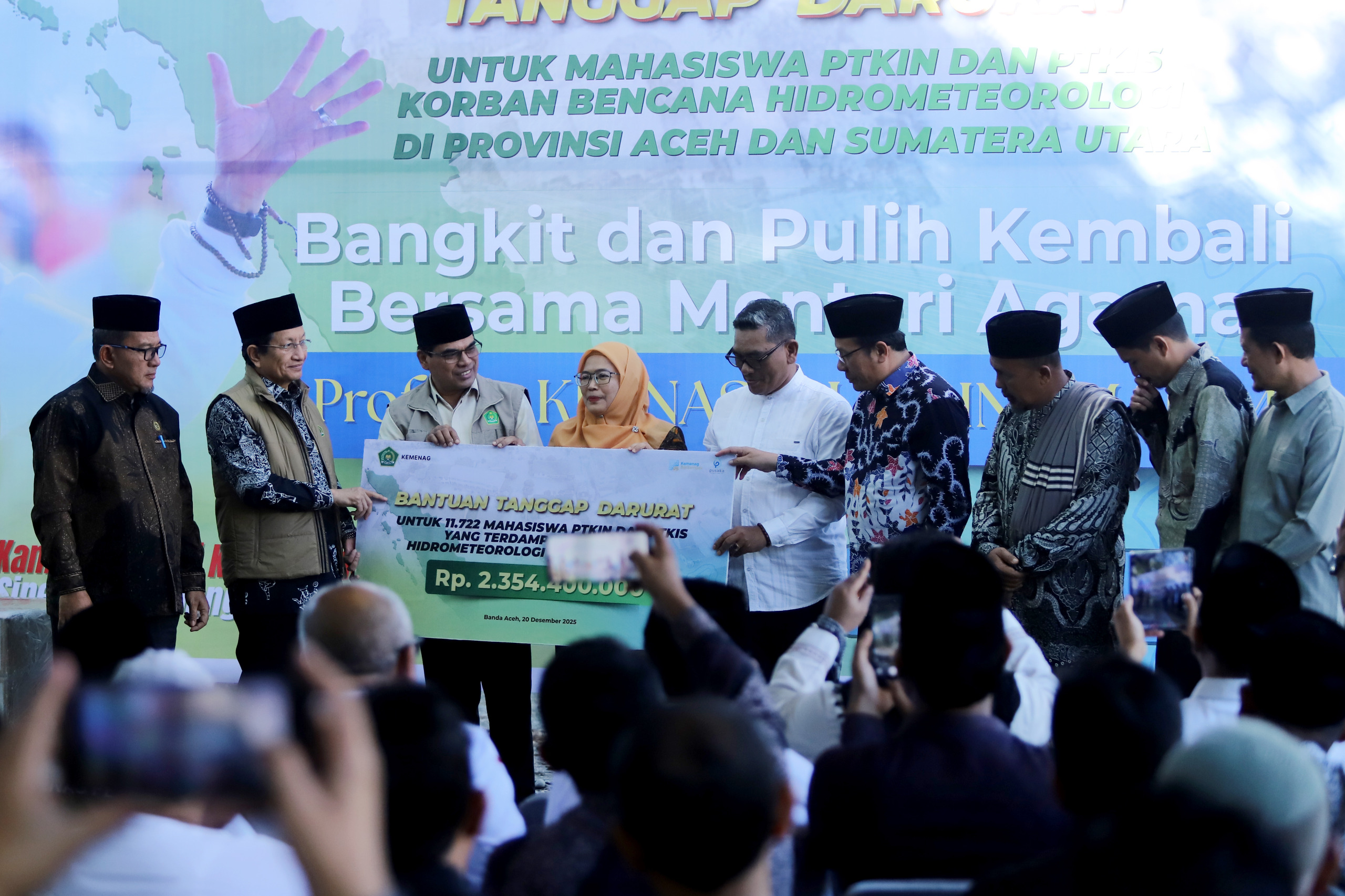 Selain mahasiswa UIN Ar-Raniry, Kemenag juga menyalurkan bantuan kepada mahasiswa perguruan tinggi keagamaan lain yang terdampak banjir. Secara keseluruhan, bantuan diberikan kepada 11.772 mahasiswa dari lima Perguruan Tinggi Keagamaan Islam Negeri (PTKIN) dan delapan Perguruan Tinggi Keagamaan Islam Swasta (PTKIS) di Aceh dan Sumatra.