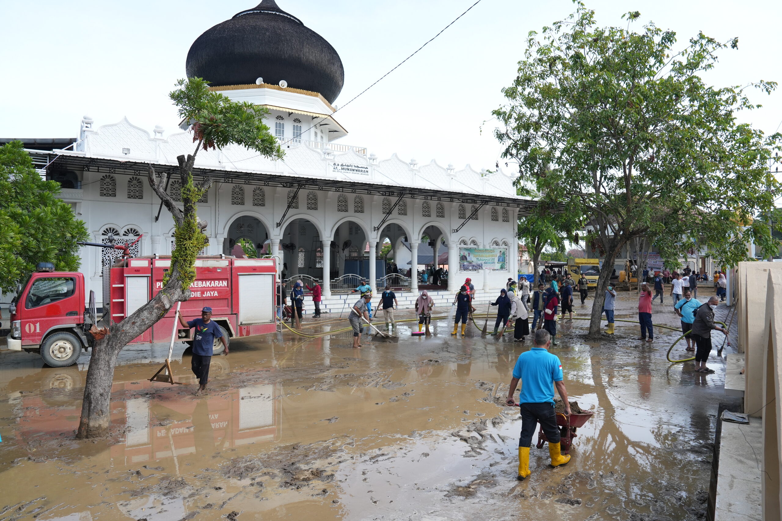 “Kami hadir untuk membantu semampu kami, mulai dari pembersihan masjid, penyediaan fasilitas air bersih, hingga penyaluran bantuan logistik. Ini merupakan ikhtiar kecil dari kampus dan semoga dapat meringankan beban masyarakat terdampak,” ujar Prof. Marwan.