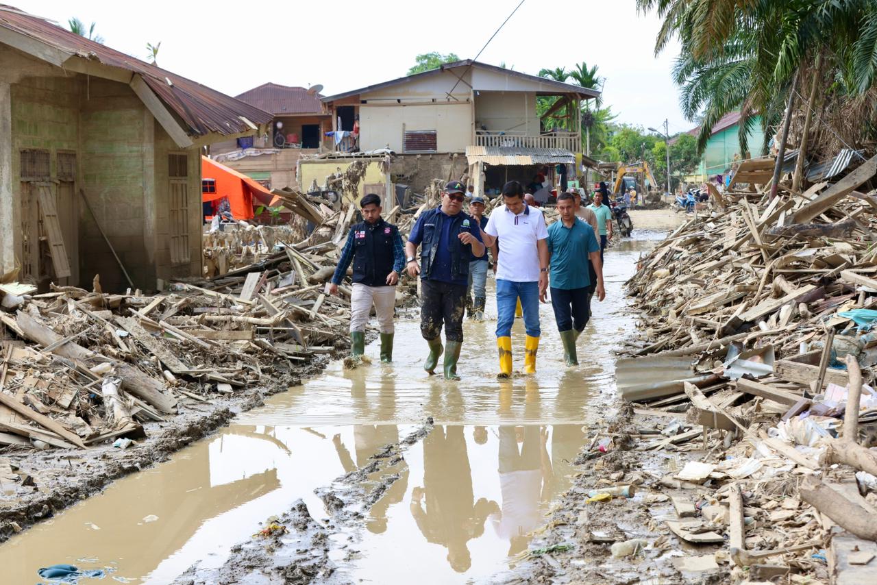 Sebagai langkah nyata, lima unit alat berat dikerahkan ke lokasi guna membersihkan material lumpur dan kayu gelondongan yang menimbun sejumlah fasilitas sekolah.