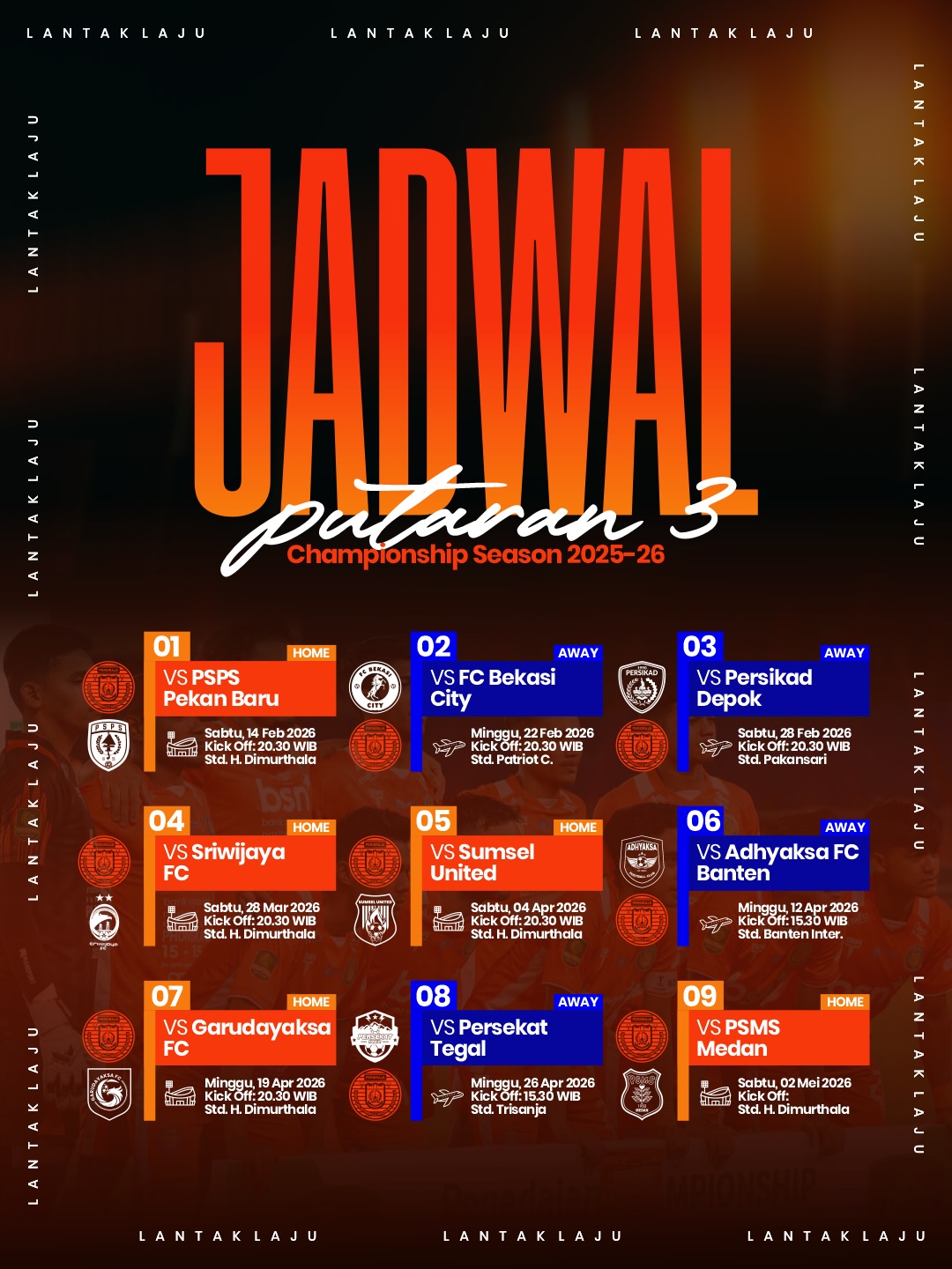Setelah menghadapi PSPS Riau, Persiraja akan melakoni dua laga tandang beruntun ke Pulau Jawa. Mereka dijadwalkan bertandang ke markas Bekasy City di Stadion Patriot Candrabhaga, Minggu (22/2/2026), lalu melanjutkan perjalanan ke Stadion Pakansari, Bogor, untuk menghadapi Persikad pada Sabtu (28/2/2026).