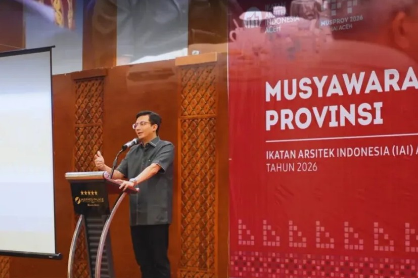 Pesan itu ia sampaikan saat membuka Musyawarah Provinsi (Musprov) Ikatan Arsitek Indonesia (IAI) Aceh 2026 di Hotel Hermes Palace, Banda Aceh, Jumat (6/2/2026).