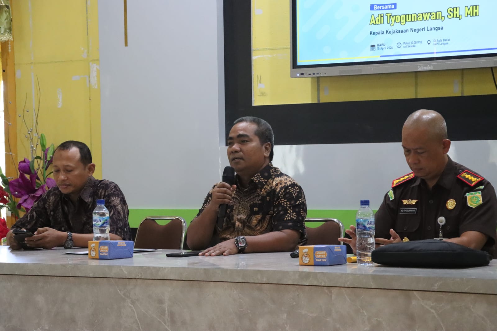 Upaya tersebut diwujudkan melalui peluncuran program Academic Discussion Forum (ADF) yang menghadirkan Kepala Kejaksaan Negeri Langsa, Adi Tyogunawan, sebagai pemateri dalam forum bertajuk “Easy Way to Speak English” di aula barat kampus, Rabu (15/4/2026).