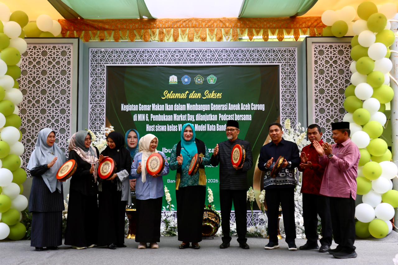 DONYAPOST, Banda Aceh — Ketua TP PKK Aceh, Marlina Muzakir, menggaungkan pentingnya konsumsi ikan sejak dini saat mengunjungi MIN 6 Model Banda Aceh dalam kampanye Gerakan Memasyarakatkan Makan Ikan (Gemarikan), Sabtu (18/4/2026).