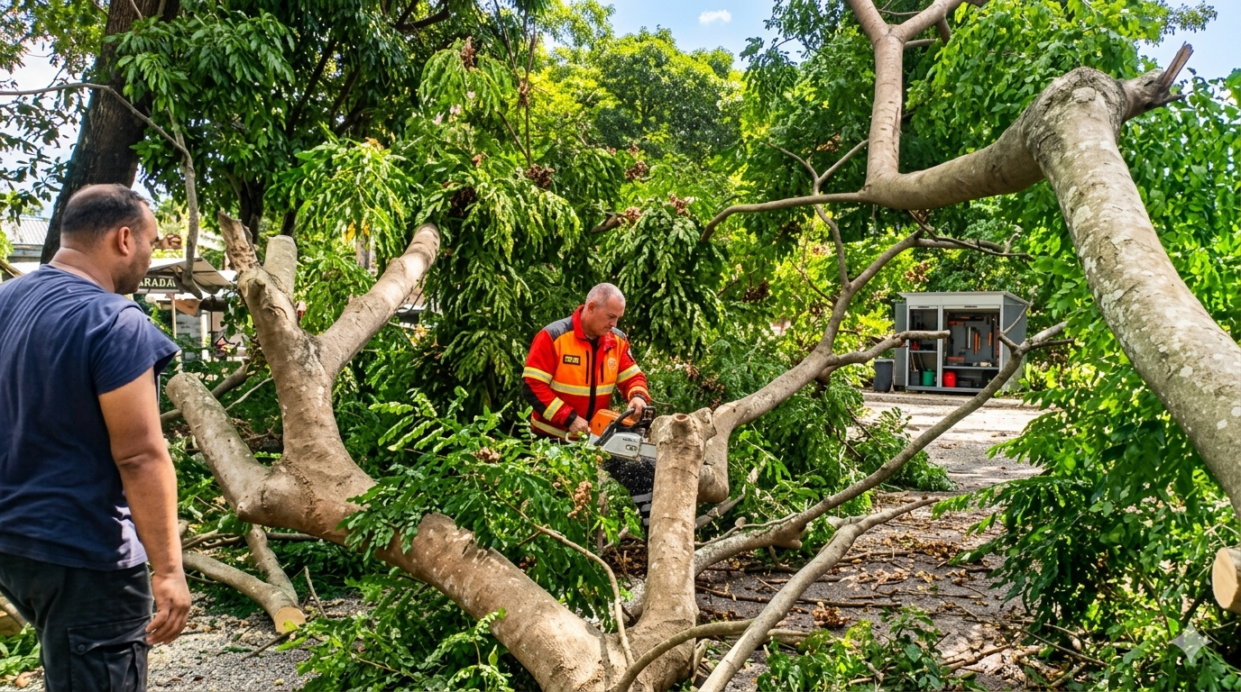 DONYAPOST, Aceh Besar — Aksi cepat ditunjukkan Kepala Dinas Lingkungan Hidup dan Kebersihan (DLHK) Aceh Besar, Muwardi, saat menangani pohon tumbang yang sempat menutup badan jalan di kawasan Simpang Lubok, Sabtu (18/4/2026).