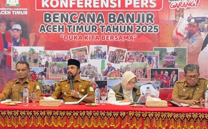 Rapat tersebut turut dihadiri oleh Badan Nasional Penanggulangan Bencana serta para camat, dan berlangsung di Aula Serbaguna Pendopo Bupati Aceh Timur, Senin (20/4/2026).