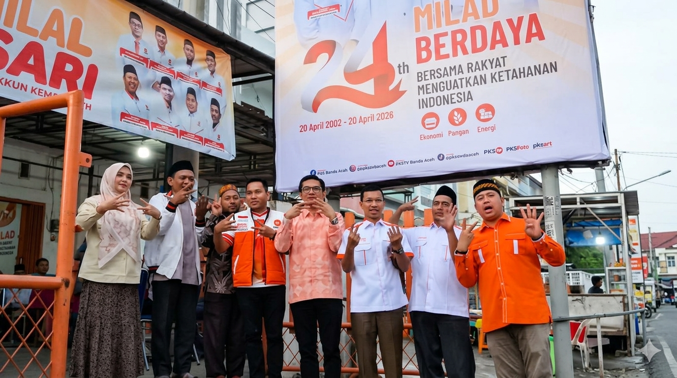 DONYAPOST, Banda Aceh — Partai Keadilan Sejahtera Kota Banda Aceh menggelar resepsi Milad ke-24 dengan tema “Milad Berdaya: Bersama Rakyat Menguatkan Ketahanan Indonesia” di kantor DPD PKS, Jalan Syiah Kuala, Gampong Bandar Baru, Senin (20/4/2026).