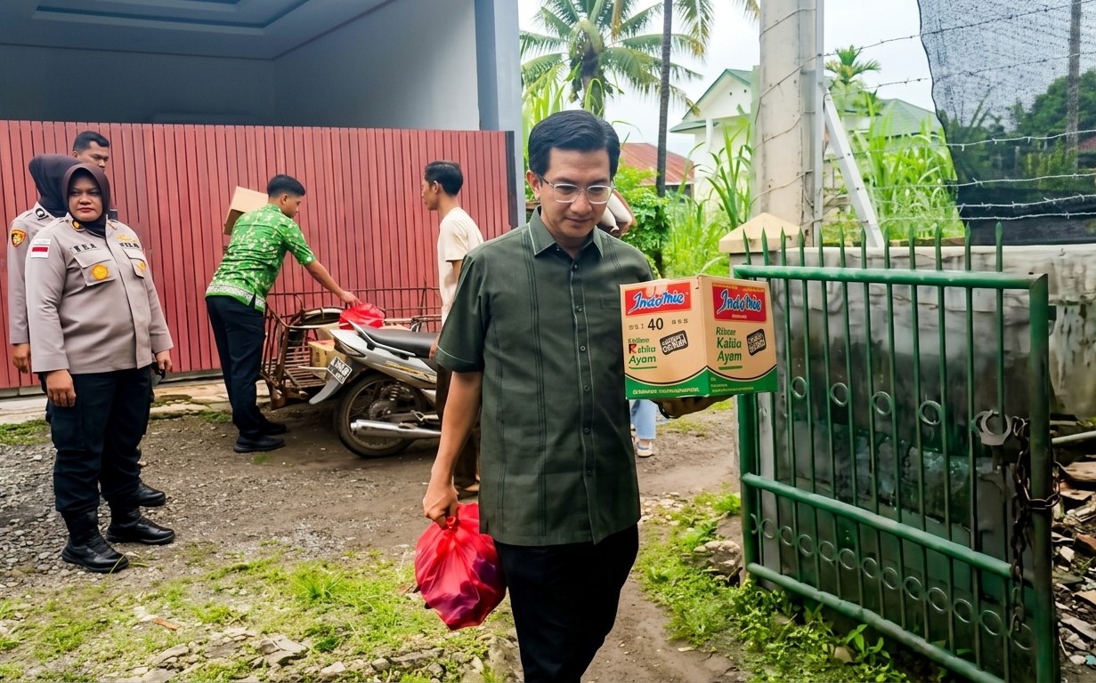 Dalam kunjungannya, ia juga menyerahkan bantuan berupa beras, sembako, dan lauk pauk untuk kebutuhan jangka pendek.